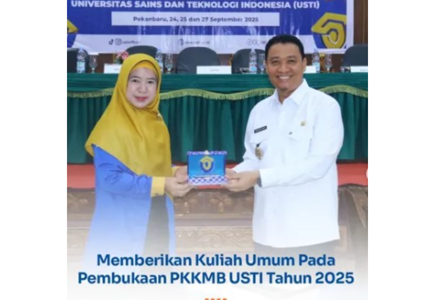 Pekanbaru (24 Sept 2025)- Wakil Walikota Pekanbaru, H. Markarius Anwar, ST., M.Arch, hadir sebagai pembicara utama dalam acara Pengenalan Kehidupan Kampus bagi Mahasiswa Baru (PKKMB) Universitas Sains dan Teknologi Indonesia (USTI) tahun 2025. Kehadiran beliau di kampus USTI disambut hangat oleh Rektor USTI, Assoc. Prof. Dr. Lusiana, S.Kom, M.Kom, bersama seluruh pejabat struktural, dosen, karyawan, dan mahasiswa.